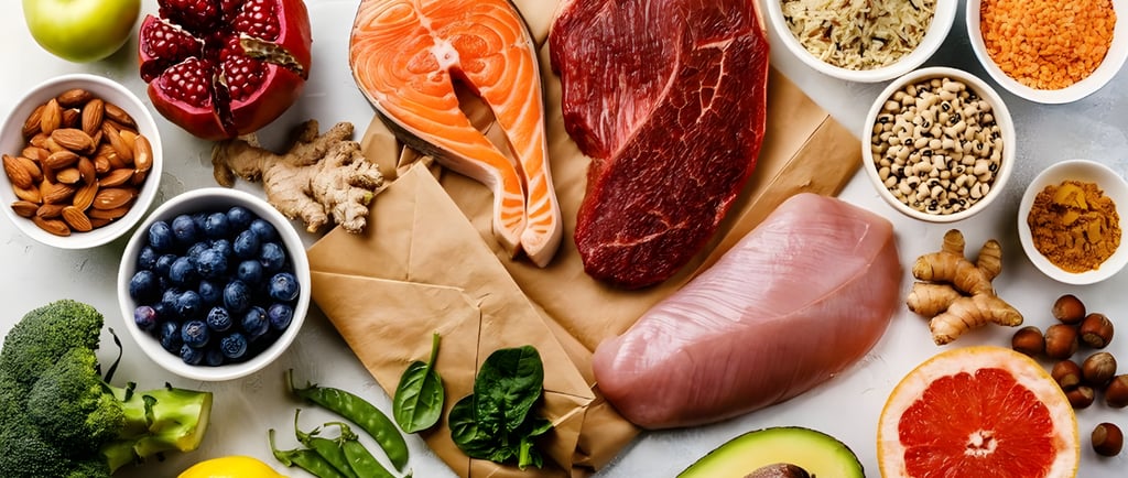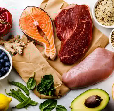 البروتين: البيض، الدجاج، الأسماك، البقوليات.